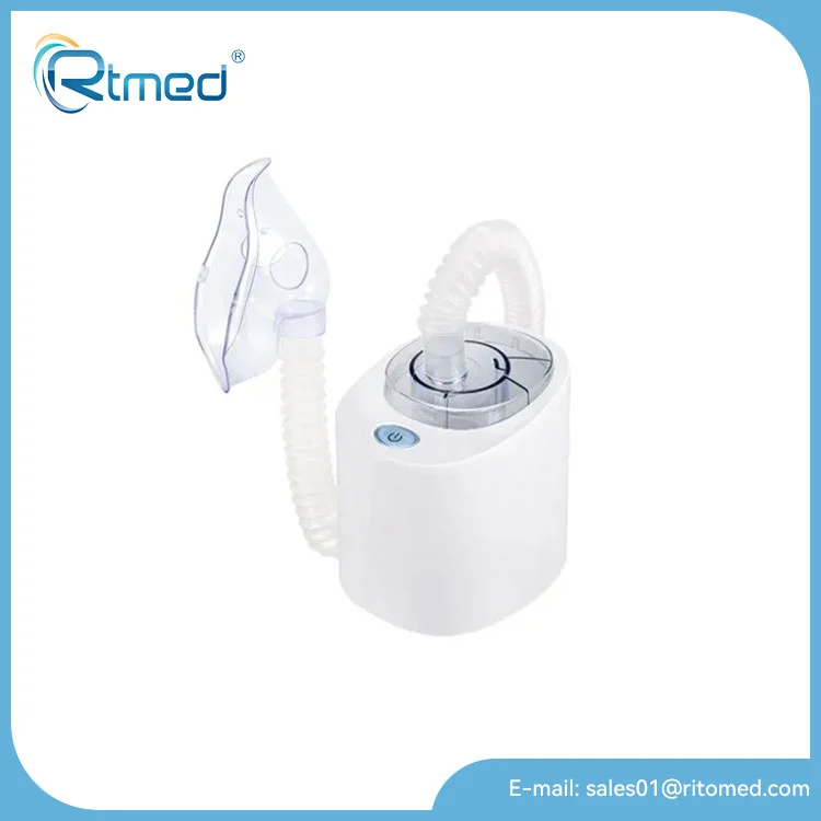 이 RTMED 분무기 세트는 액체 약품을 쉽게 흡입할 수 있는 미스트로 바꾸는 소형 기계입니다. 기계 옆에 앉아 연결된 마우스피스나 안면 마스크를 통해 약을 흡입합니다. 이렇게 하면 약이 폐로 직접 들어갈 수 있습니다.